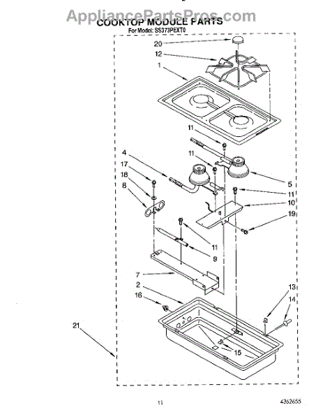 Parts for Whirlpool SS373PEXT0: 08 - Cooktop Module Parts