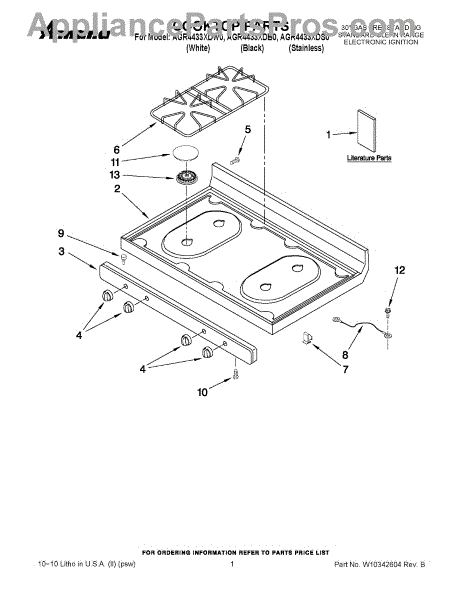 Parts for Amana AGR4433XDB0: 01 - Cooktop Parts
