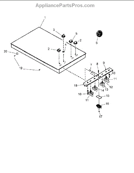 This surface burner infinite switch sits behind the knob and regulates power to the cooktop/range element. Replacing a failed switch restores accurate heat settings so the burner can turn on, modulate properly, and shut off as expected.