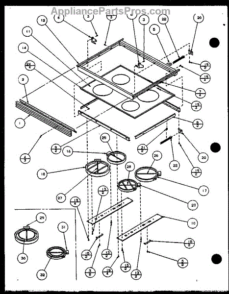 Parts for Amana ARH660HR-P1120001S: Cooktop Parts