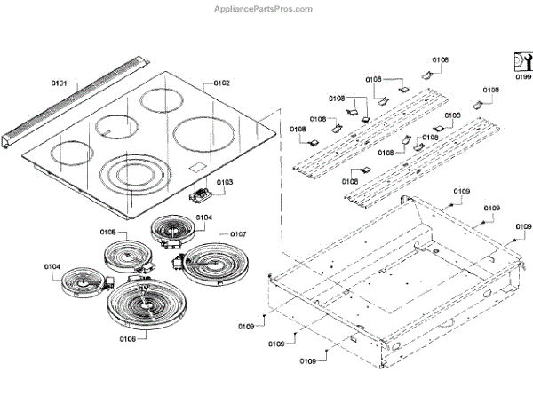 This hob top is the glass cooktop surface that covers and protects the heating elements while providing a smooth cooking area. It restores a flat, heat-safe surface and keeps burners sealed from spills and debris. What it does: