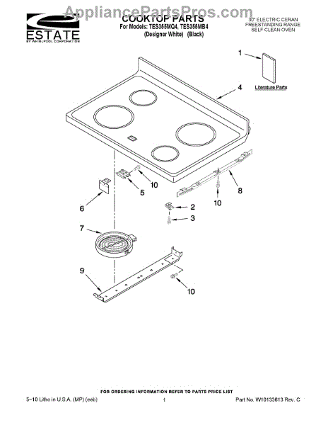 Parts for Estate TES355MQ4: 01 - Cooktop Parts