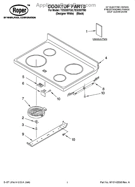 Parts for Estate TES355TQ0: 01 - Cooktop Parts