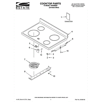 Parts for Estate TES356RD0: 01 - Cooktop Parts