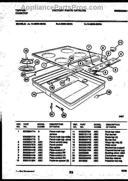 By Tappan/Frigidaire. One drip pan per package. Round and has three openings. Fits some Tappan, Frigidaire, Amana, Caloric, Modern Maid, GE, and HotPoint models. Color: chrome. Measures about 8 inches in diameter. Matching grate: 316055800.
