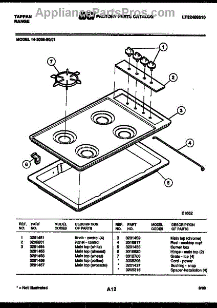 Parts for Frigidaire 14-3038-08-01: 02 - Cooktop Parts