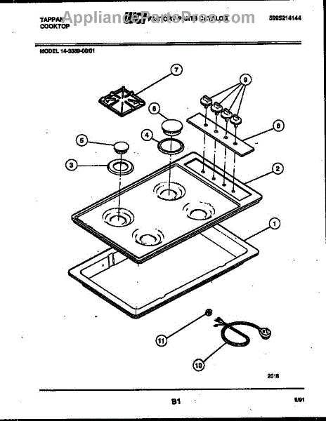 Parts for Frigidaire 14-3089-00-01: 02 - Cooktop Parts