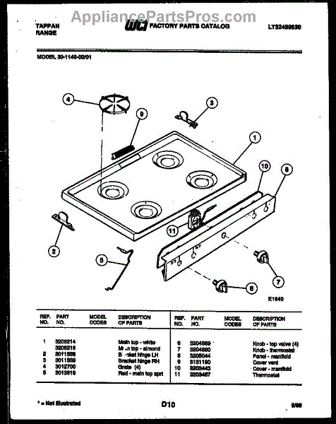 Parts for Frigidaire 30-1049-00-02: 03 - Cooktop Parts