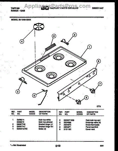 Parts for Frigidaire 30-1049-23-04: 03 - Cooktop Parts