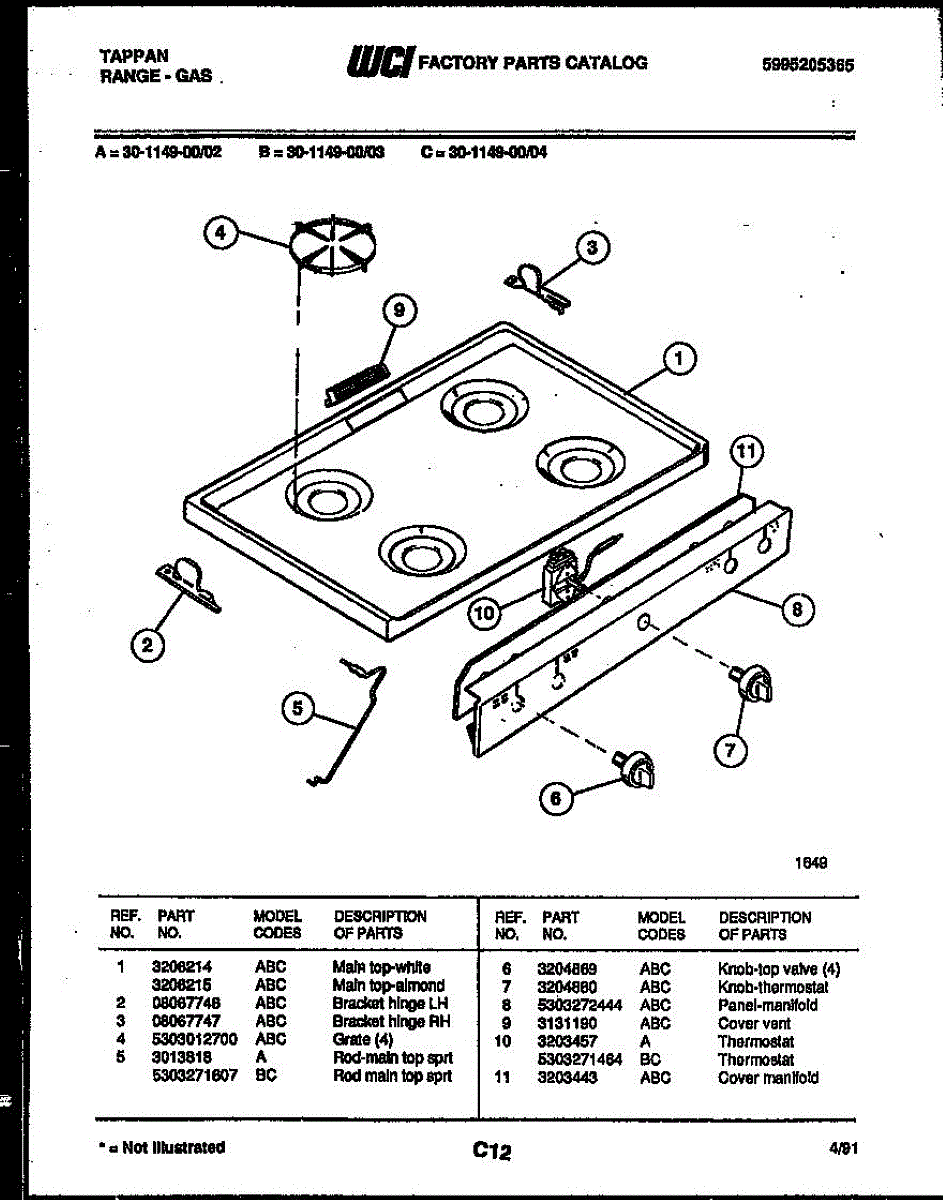 Parts for Frigidaire 30-1149-00-02: 03 - Cooktop Parts