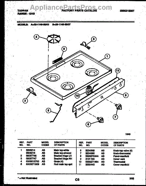 Parts for Frigidaire 30-1149-00-07: 03 - Cooktop Parts