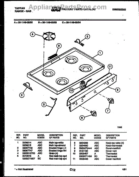 Parts for Frigidaire 30-1149-23-02: 03 - Cooktop Parts