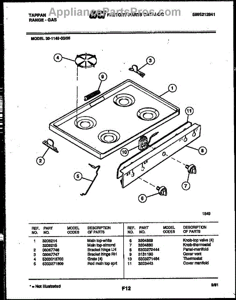Parts for Frigidaire 30-1149-23-05: 03 - Cooktop Parts