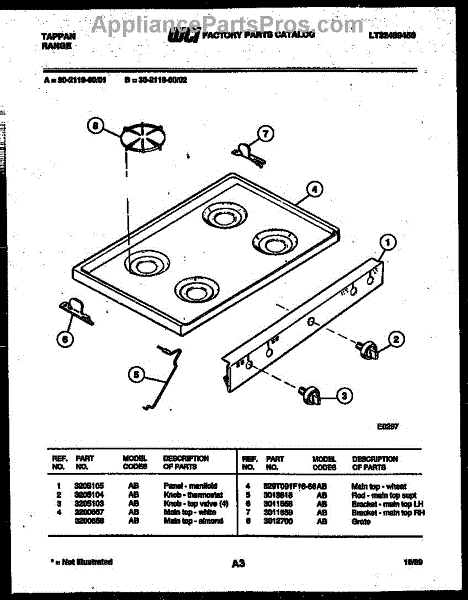 Parts for Frigidaire 30-2119-00-01: 03 - Cooktop Parts