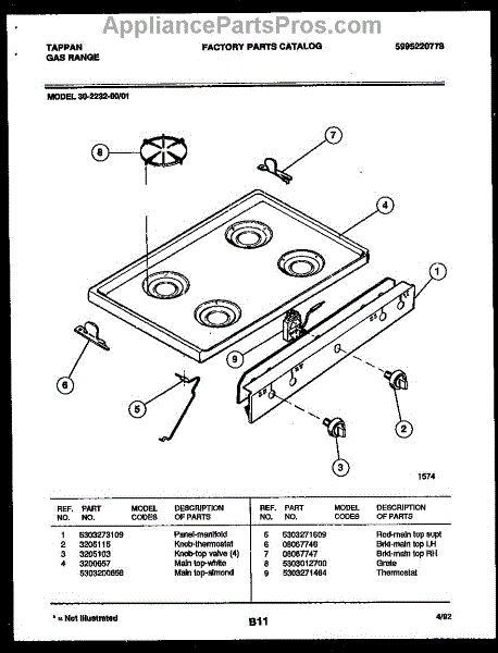 Parts for Frigidaire 30-2232-23-01: 03 - Cooktop Parts