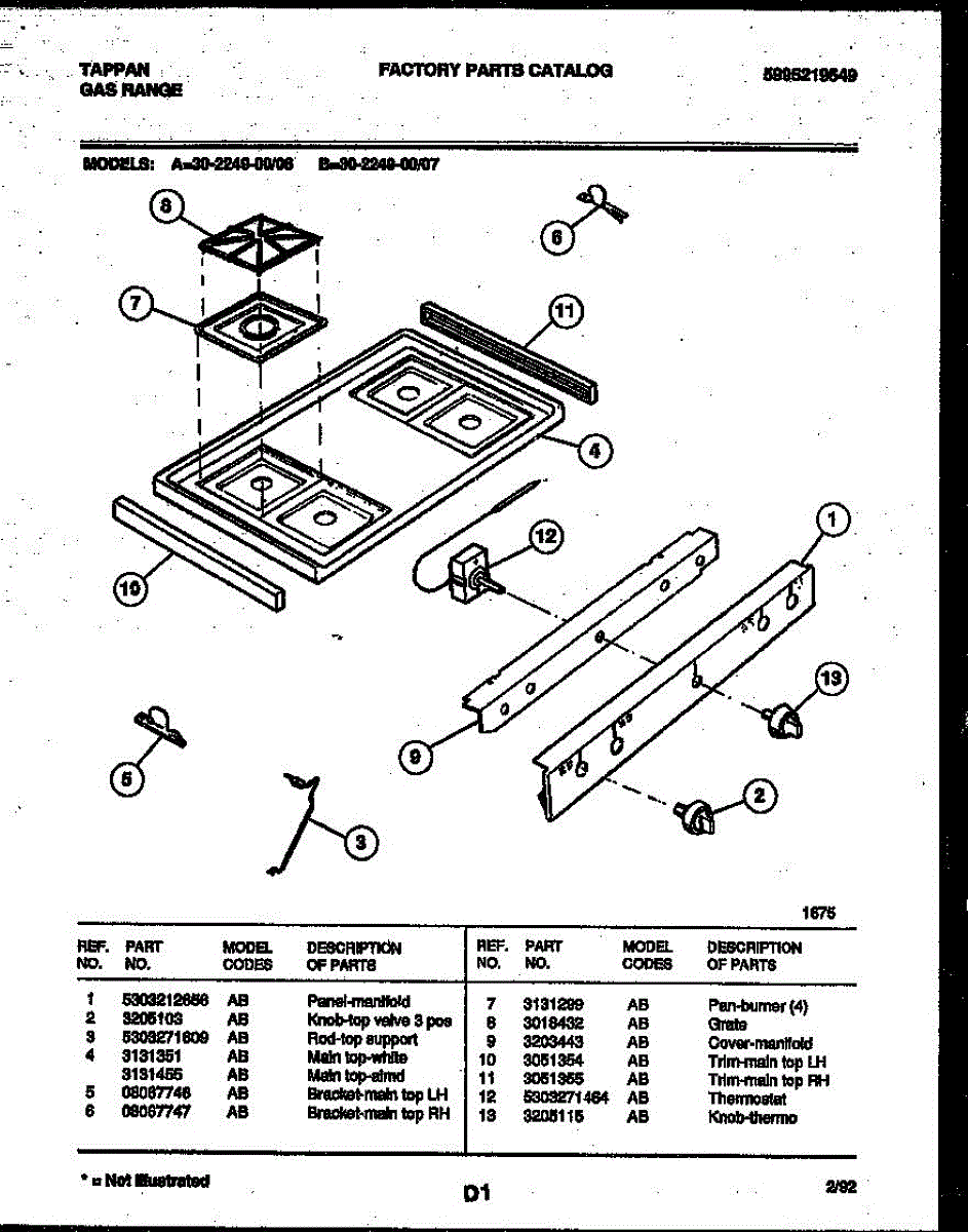 Parts for Frigidaire 30-2249-00-07: 03 - Cooktop Parts