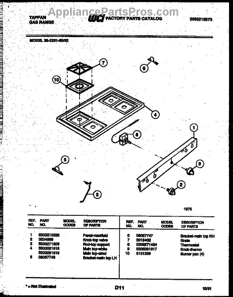 Parts for Frigidaire 30-2251-23-02: 03 - Cooktop Parts