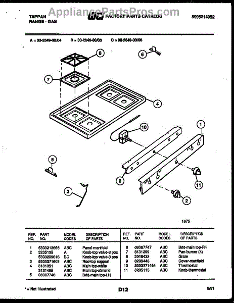 Parts for Frigidaire 30-2549-00-05: 03 - Cooktop Parts