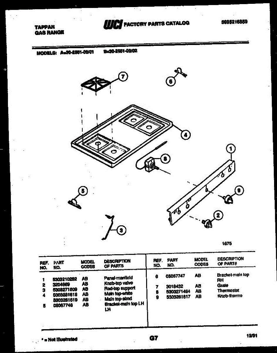 Parts for Frigidaire 30-2551-00-01: 03 - Cooktop Parts