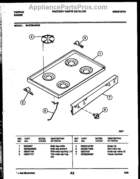Parts for Frigidaire 30-2759-00-05: 03 - Cooktop Parts