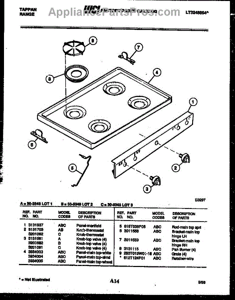 Parts for Frigidaire 30-3348-00-01: 03 - Cooktop Parts