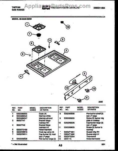 Parts for Frigidaire 30-3350-00-02: 03 - Cooktop Parts