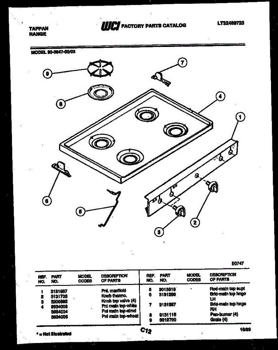 Parts for Frigidaire 30-3647-00-03: 03 - Cooktop Parts