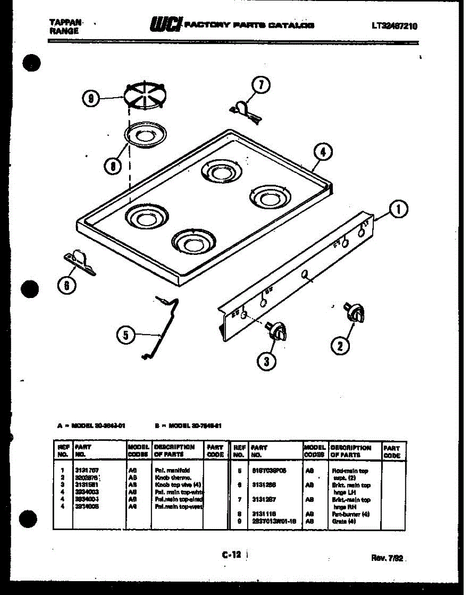 Parts for Frigidaire 30-3648-00-01: 03 - Cooktop Parts
