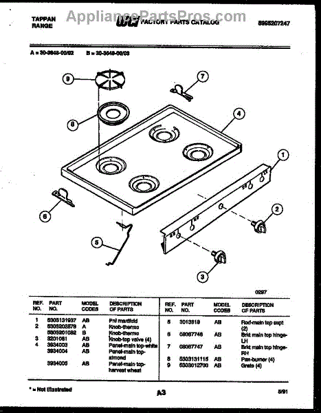 Parts for Frigidaire 30-3648-00-03: 03 - Cooktop Parts