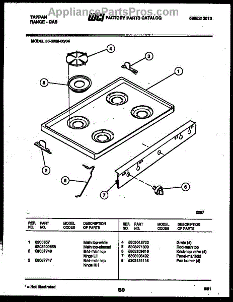 Parts for Frigidaire 30-3859-00-04: 03 - Cooktop Parts