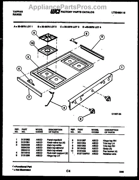 Parts for Frigidaire 30-3978-23-02: 03 - Cooktop Parts