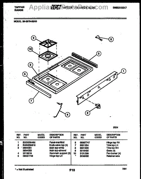 Parts for Frigidaire 30-3979-00-05: 03 - Cooktop Parts
