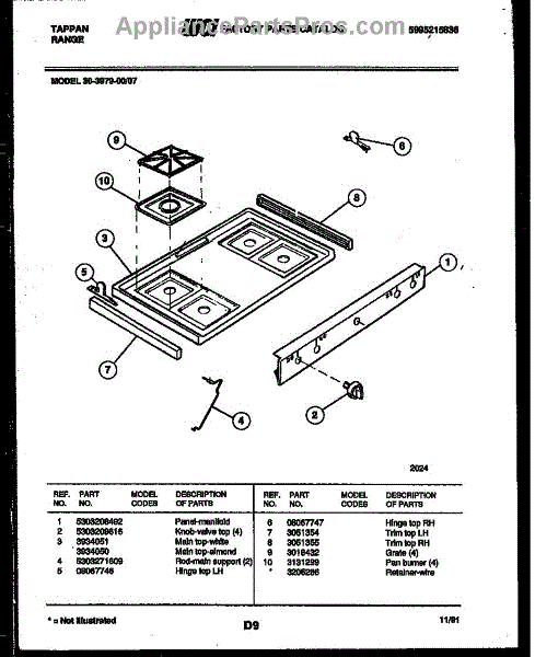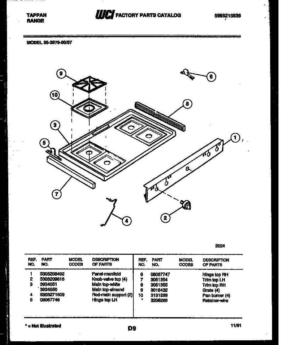 Parts for Frigidaire 30-3979-00-07: 03 - Cooktop Parts