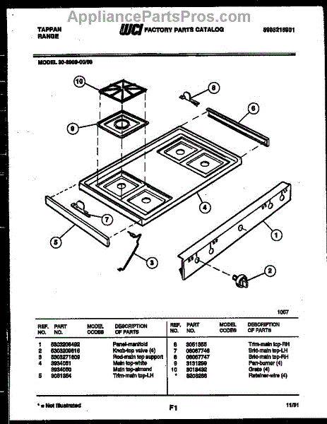 Parts for Frigidaire 30-3989-23-06: 03 - Cooktop Parts