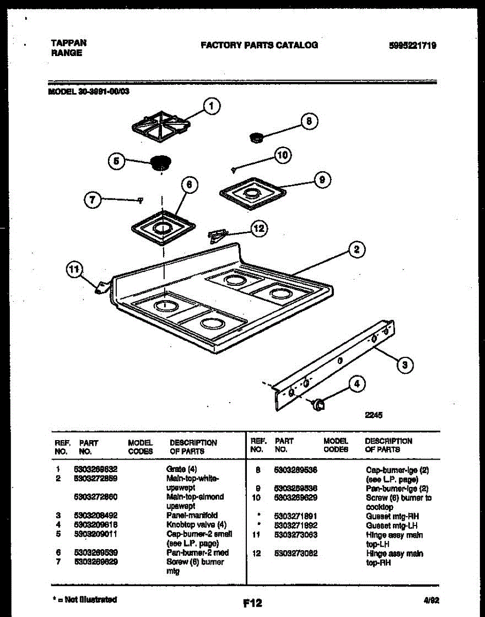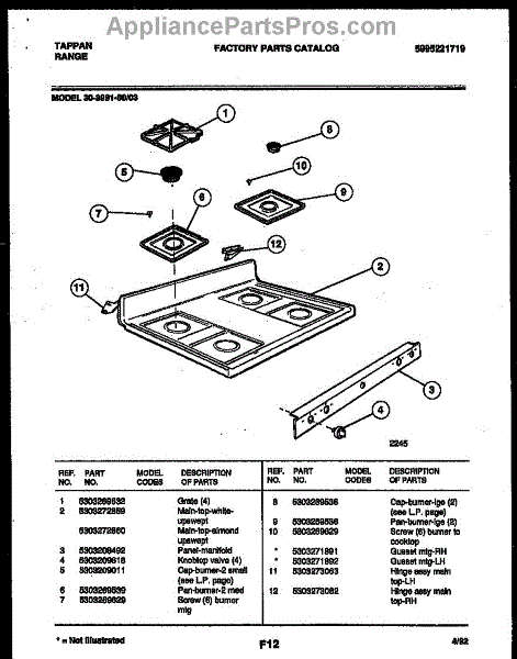 Parts for Frigidaire 30-3991-00-03: 03 - Cooktop Parts