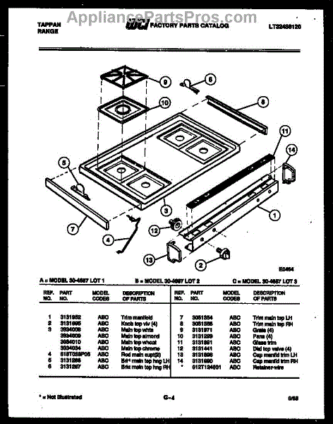 Parts for Frigidaire 30-4687-00-03: 03 - Cooktop Parts