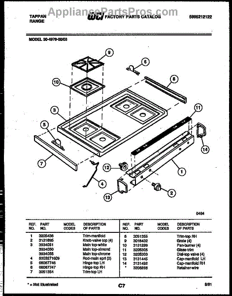 Parts for Frigidaire 30-4979-00-03: 03 - Cooktop Parts