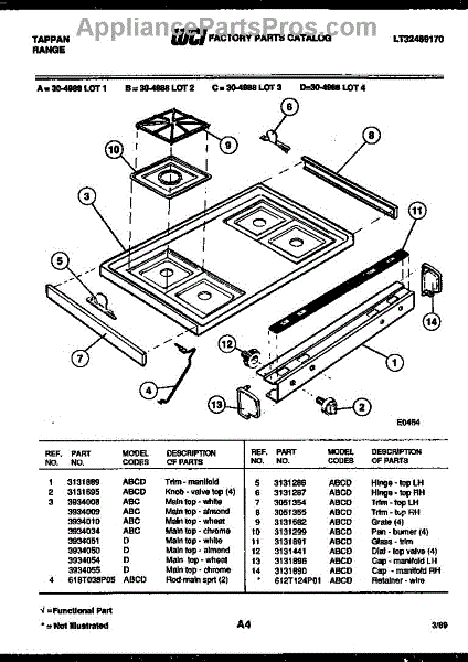 Parts for Frigidaire 30-4988-08-03: 03 - Cooktop Parts