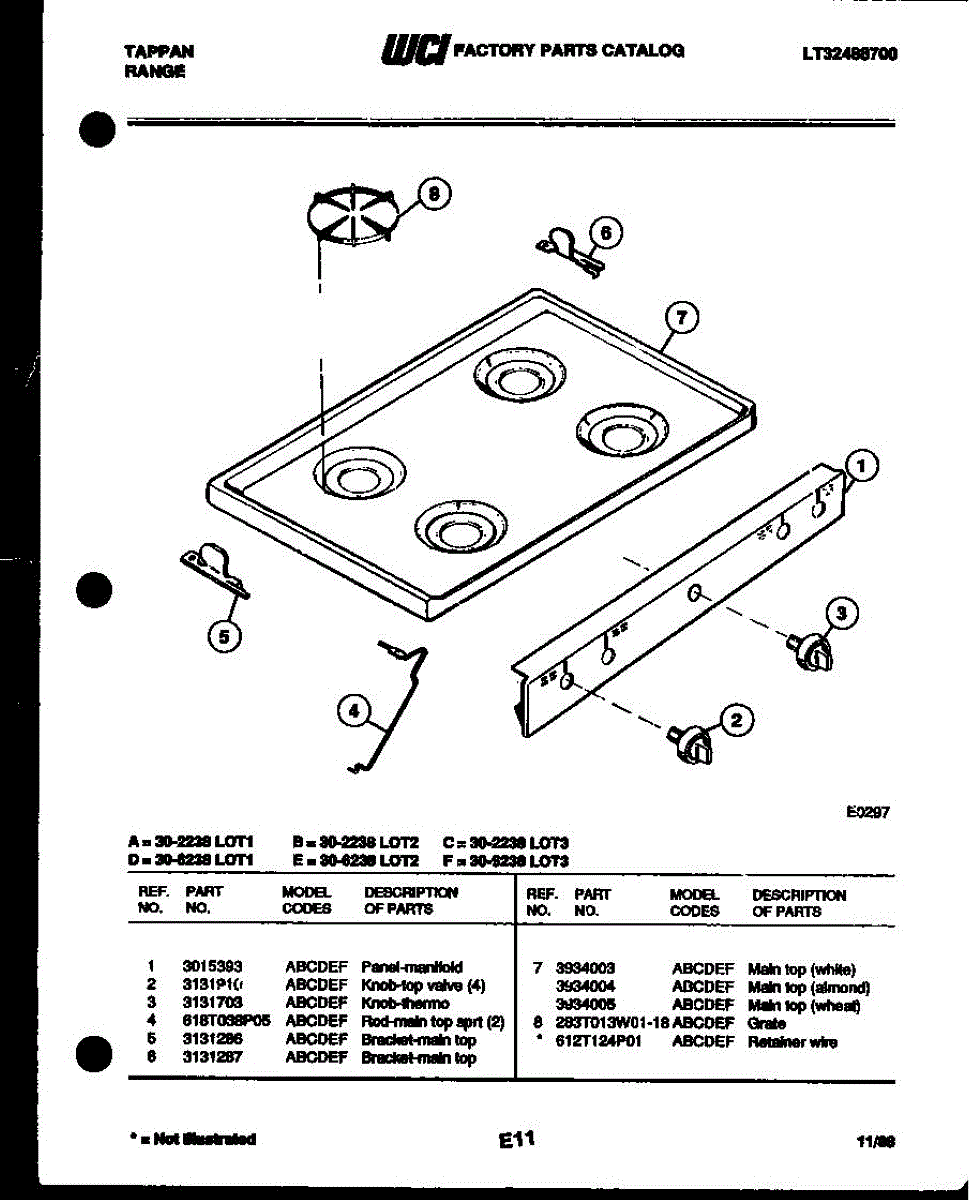 Parts for Frigidaire 30-6238-00-01: 03 - Cooktop Parts