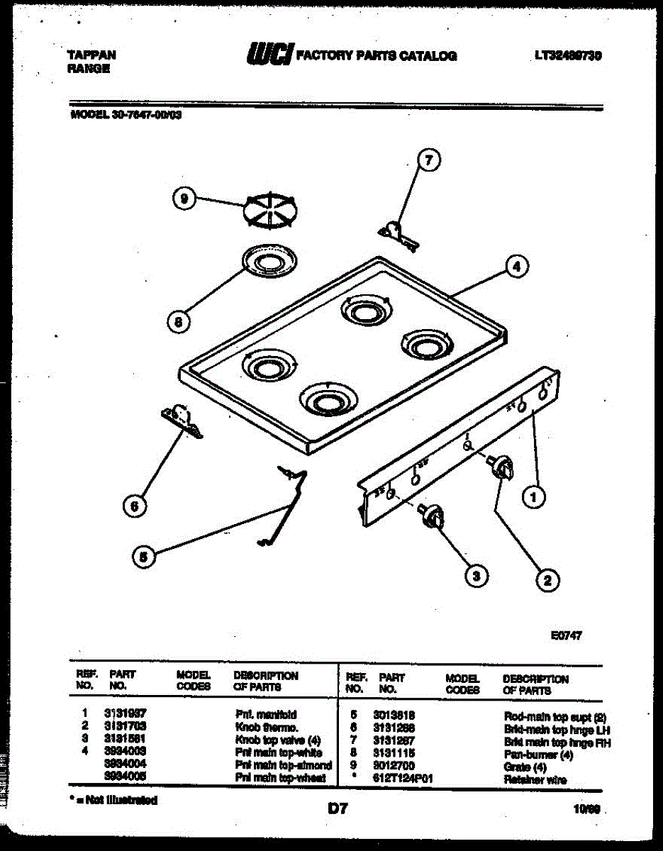 Parts for Frigidaire 30-7647-00-03: 03 - Cooktop Parts