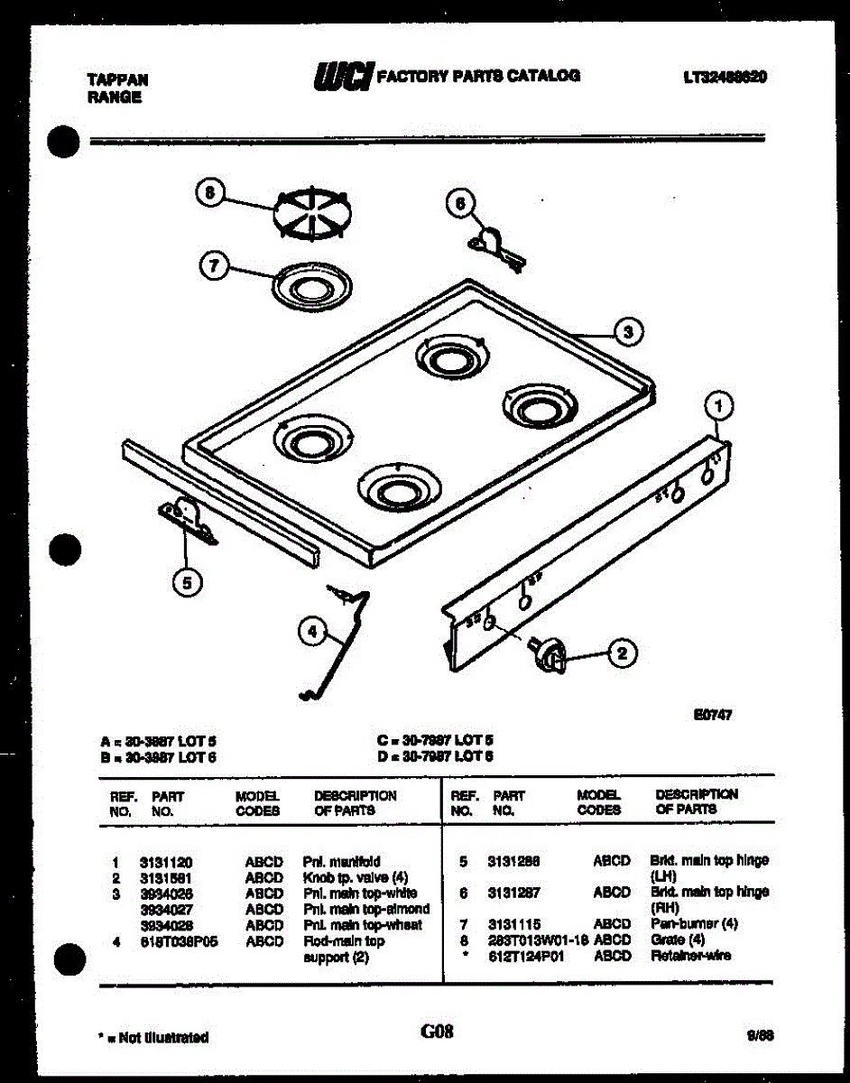 Parts for Frigidaire 30-7987-00-06: 04 - Cooktop Parts