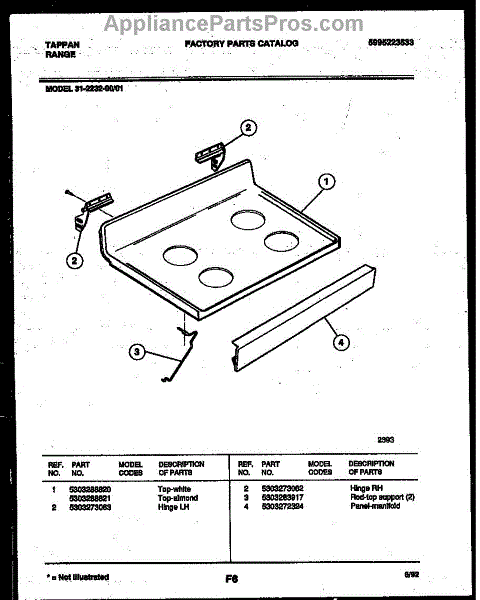 This main top is the flat cooktop surface that mounts over a range's burner box to provide a stable, finished cooking surface and protect internal components from spills and debris. It restores a level, secure area for burners and cookware. What it does: