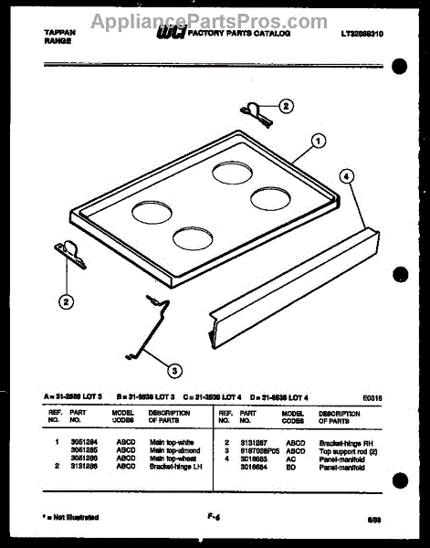Parts for Frigidaire 31-2538-66-03: 04 - Cooktop Parts