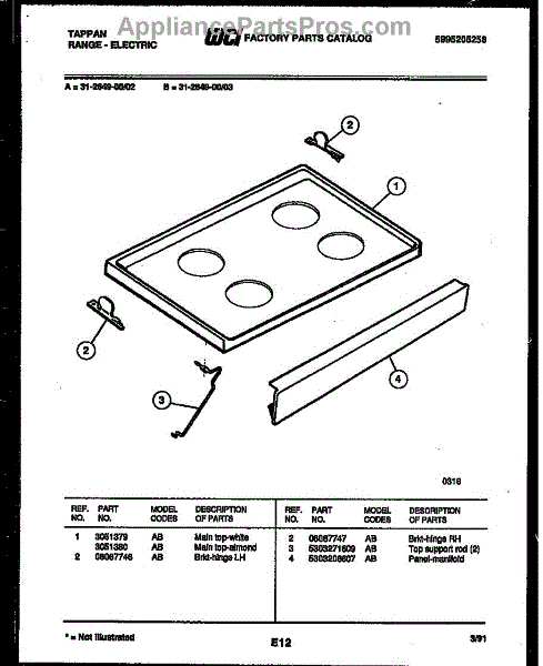 Parts for Frigidaire 31-2649-00-02: 03 - Cooktop Parts