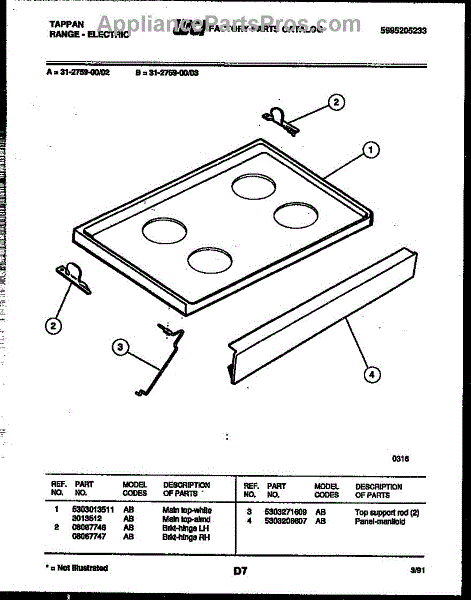 Parts for Frigidaire 31-2759-00-03: 03 - Cooktop Parts