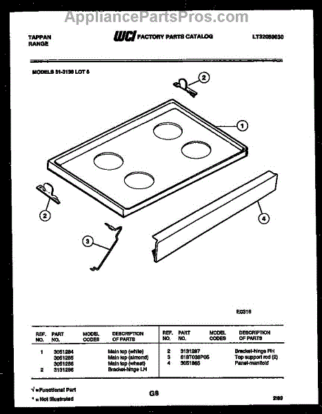 Parts for Frigidaire 31-3138-66-05: 04 - Cooktop Parts