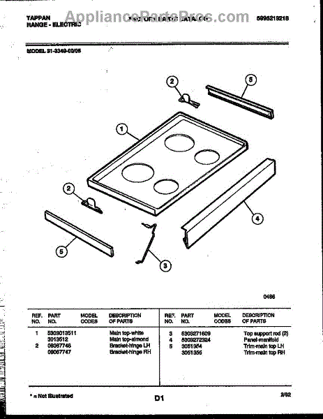 Parts for Frigidaire 31-3349-23-05: 04 - Cooktop Parts
