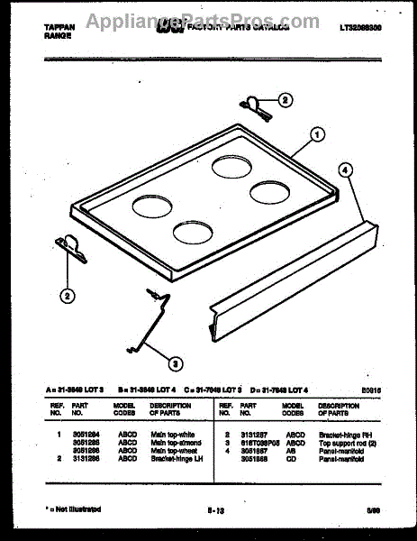 Parts for Frigidaire 31-3648-00-03: 04 - Cooktop Parts