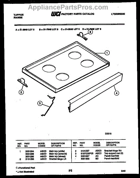 Parts for Frigidaire 31-3648-23-05: 04 - Cooktop Parts