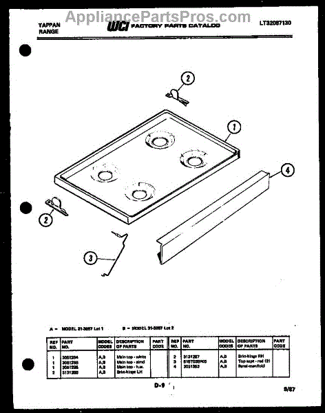 Parts for Frigidaire 31-3857-00-02: 07 - Cooktop Parts